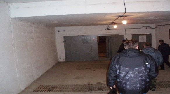 «Ворота мирного времени, как правило, всегда открыты", – рассказывает мастер участка СППМ Павел Макаров сотрудники окружного отделения спецпредприятия. Зал для укрывания – огромное просторное помещение, из которого ведут несколько дверей. За ними – технические помещения, где располагаются дизельная станция, отсек с вентиляционными установками, туалетные комнаты военного времени (отдельно для женщин и мужчин), медпункт и баки для питьевой и технической воды.»