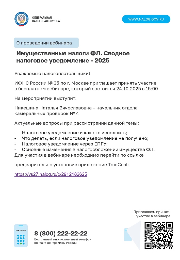 Имущественные налоги ФЛ. Сводное налоговое уведомление -2025