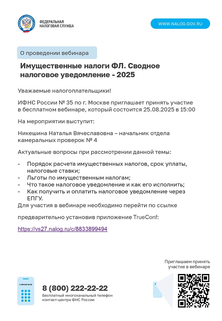 Имущественные налоги ФЛ. Сводное налоговое уведомление -2025